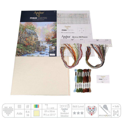 PRODUCT DETAILS This gorgeous counted cross stitch project features a beautiful nature scene with a watermill by a stream, surrounded by trees. Thi...
