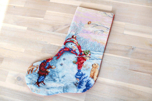 WEIHNACHTSSOCKEN / KREUZSTICH-SET Marke: Luca-S Zweigart-Stoff 14 ct. AIDA (11) Größe: 29x42cm Stickgröße: 23x34 cm Farben: 37 „Anker“-Mouli...