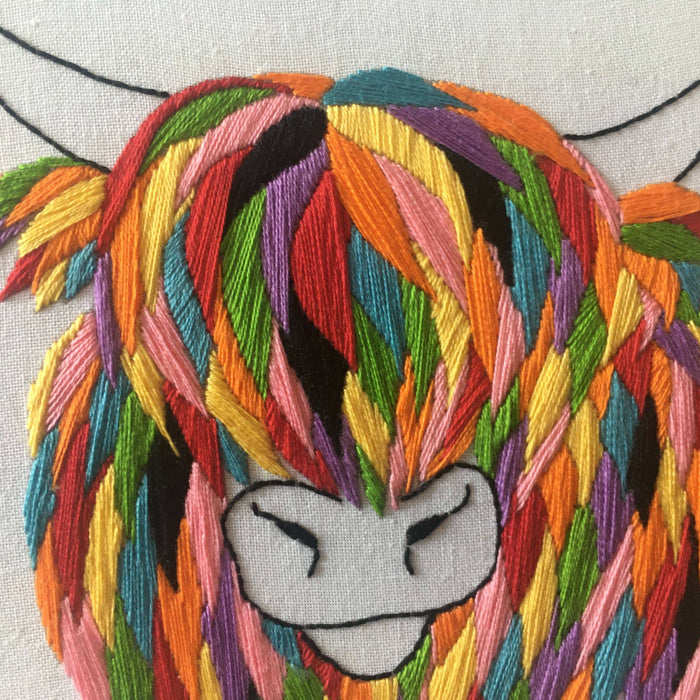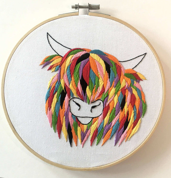 Highland Cow Embroidery Kit: Boxed kit with hoop