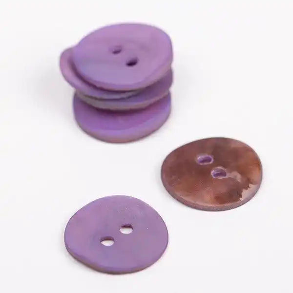 Mother of pearl buttons are delicate, shiny and very resilient; and due to the fact that they are made from a natural material, they have beautiful variations in their shape, colour and texture. This means every button is in a way, unique.